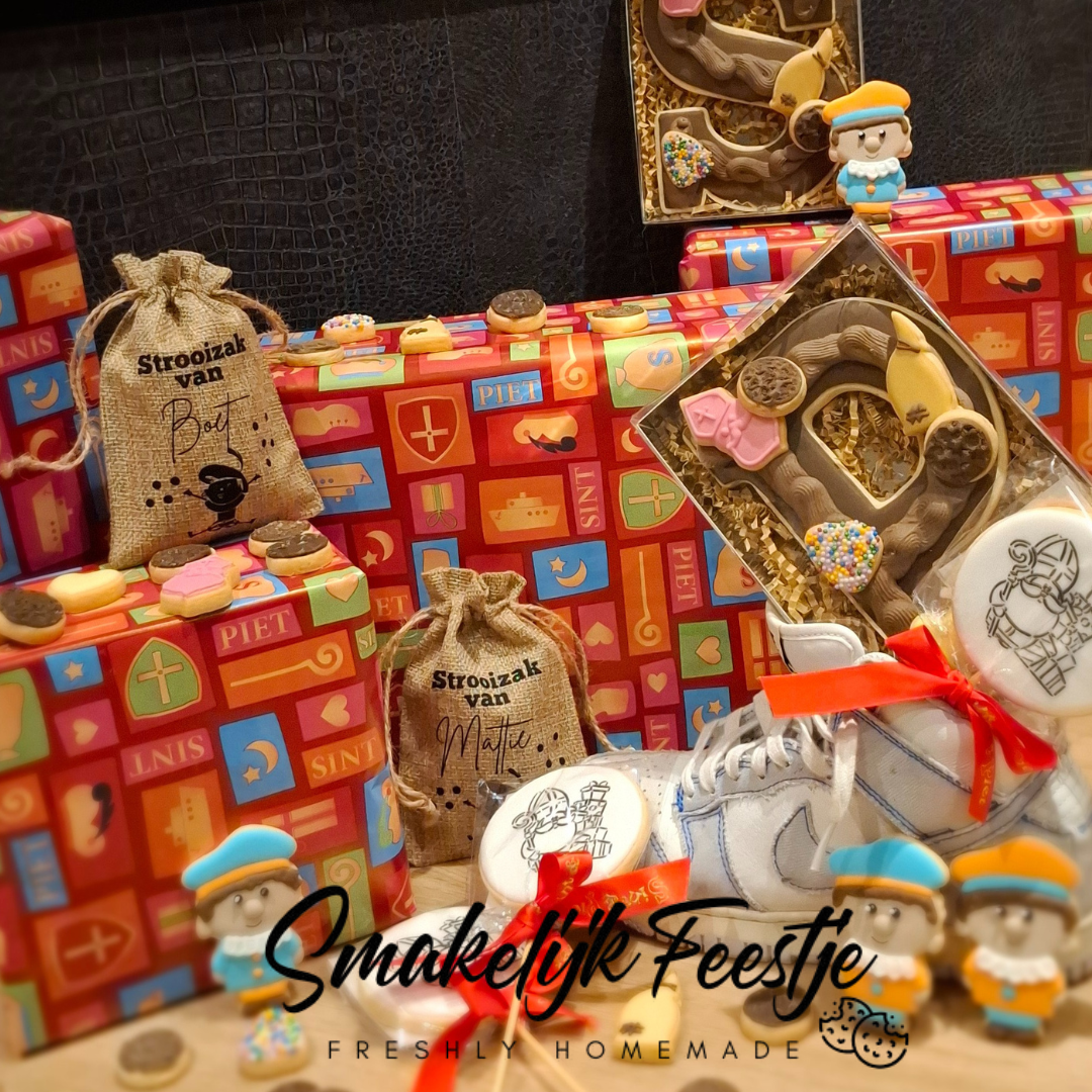 Verras iemand met een persoonlijk en heerlijke attentie! Dit schattige jutezakje wordt bedrukt met de naam van jouw keuze en is gevuld met 15 ambachtelijke koekjes, gebakken in vrolijke strooigoed-vormen zoals kruidnoten, hartjes en diverse snoepgoed. De koekjes zijn met liefde en zorg handgemaakt, en het zakje zelf is herbruikbaar – een duurzaam én origineel cadeau voor jong en oud!