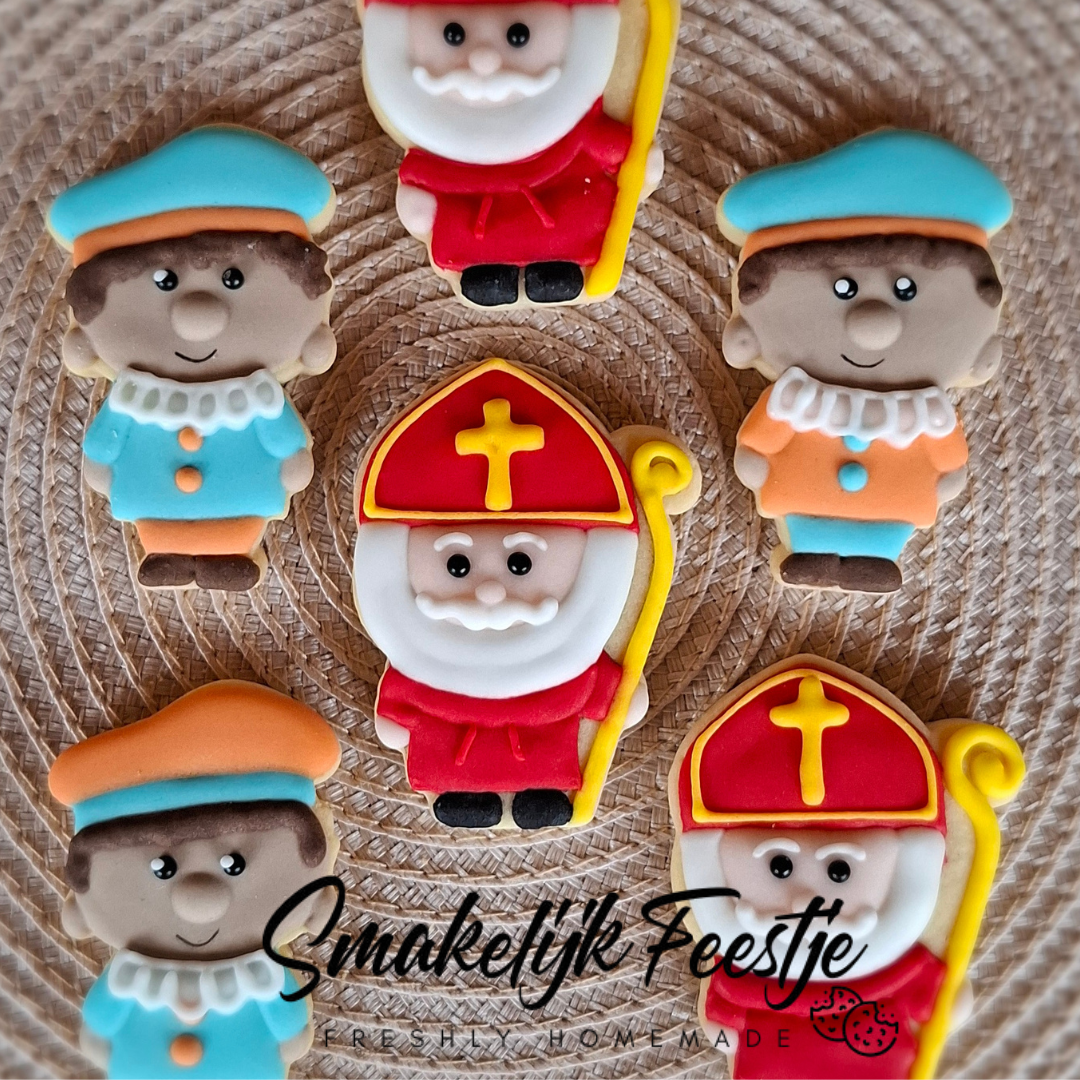 Breng de Sinterklaassfeer in huis met deze heerlijke ambachtelijke koekjes in de vorm van Sinterklaas en Piet! Perfect voor bij de warme chocolademelk, als traktatie in de schoen of als feestelijke toevoeging aan je pakjesavond.